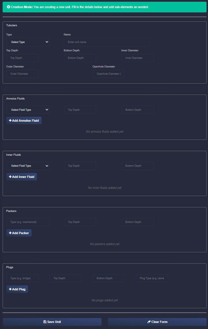 Create a new schematics unit: Add tubular first, then fluid and additional components and then press save unit button