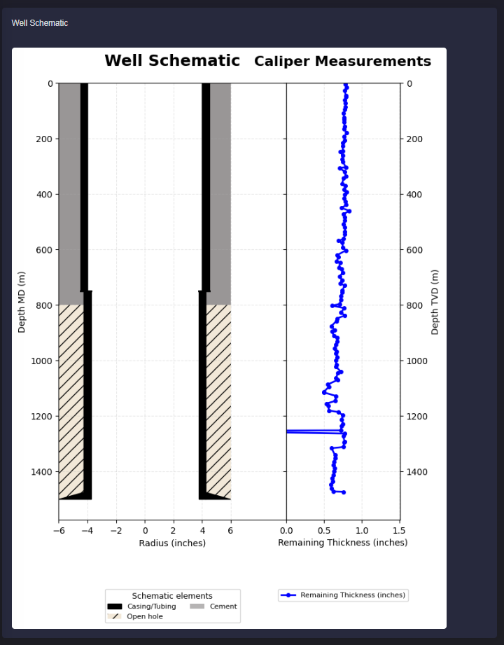 Remaining wall thickness can be viewed in the well schematic as per selected processed log.