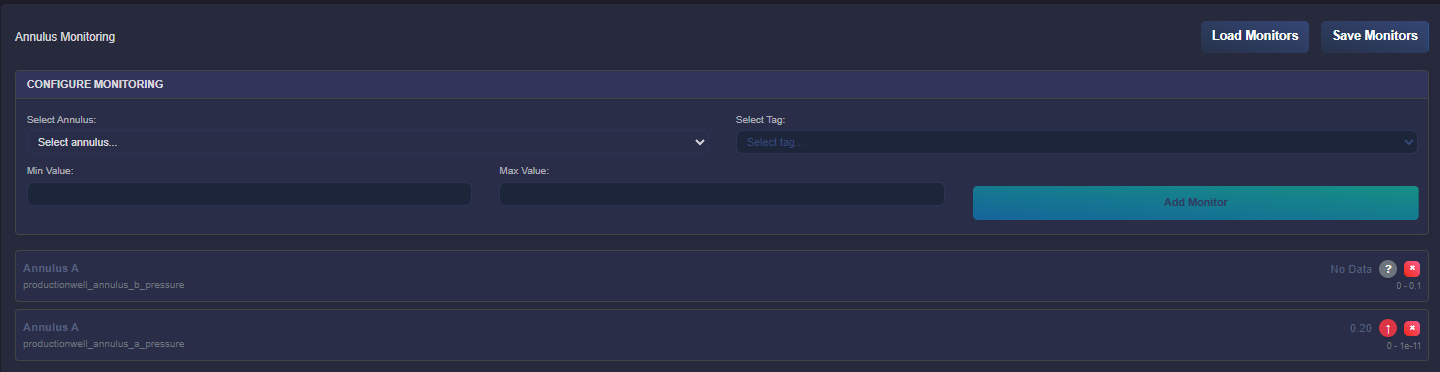 Annulus pressure can be monitored for a given well annulus based on the well schematic and notification can be set by providing min and max values.