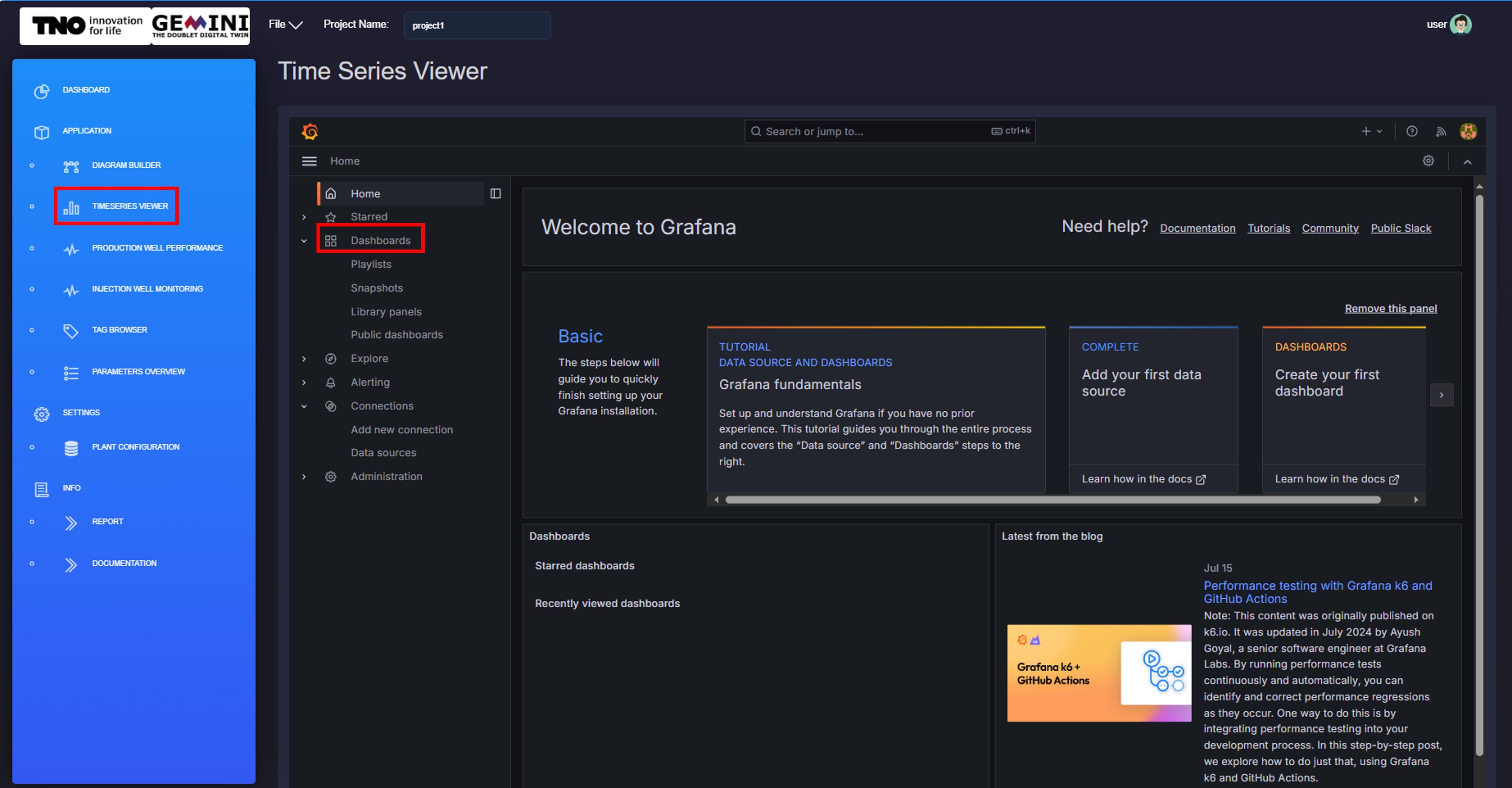 Connects to Grafana for real-time monitoring of measured or calculated parameters or properties via the module layer. Instructions on how to use Grafana can be found Time Series Viewer.