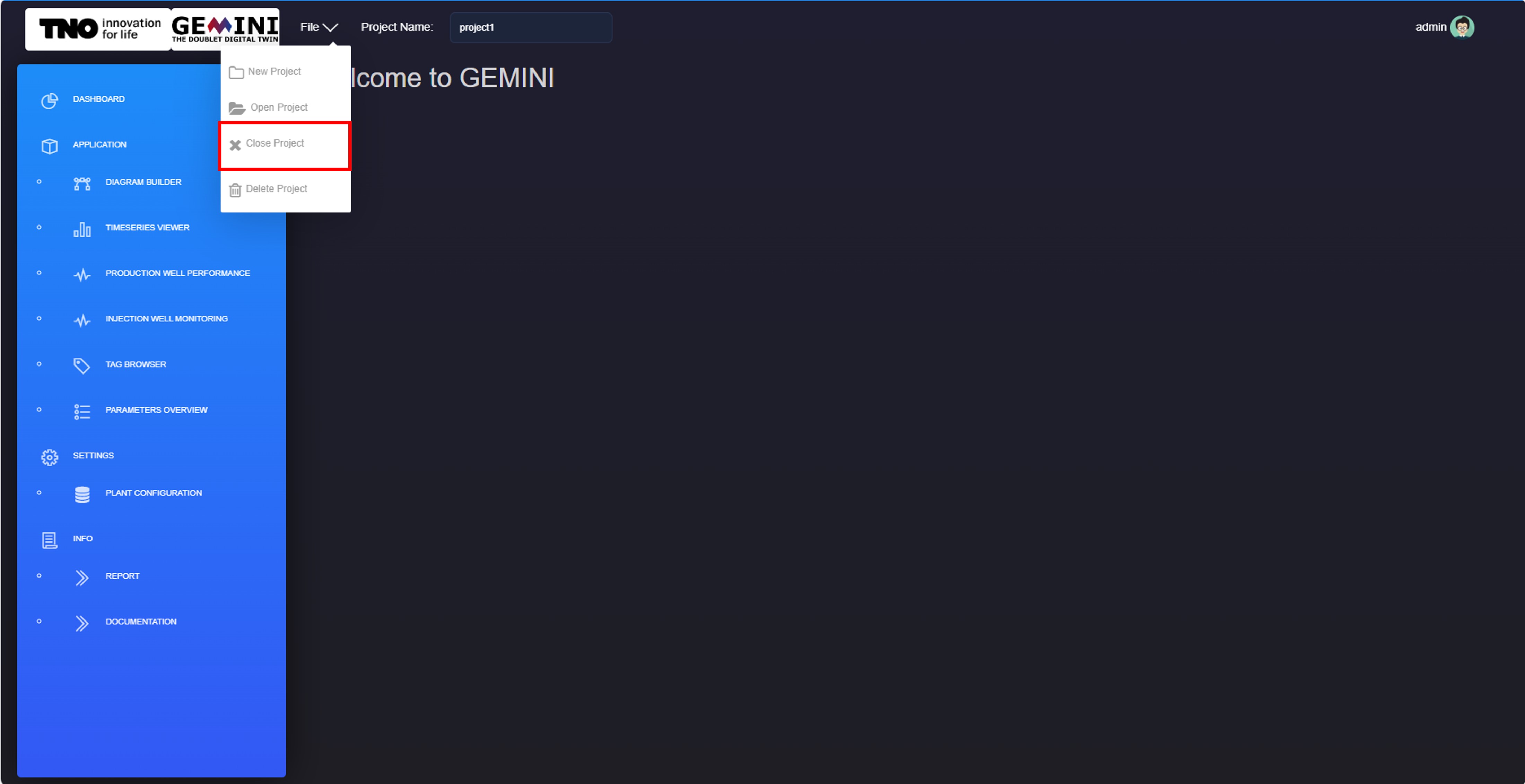 Once logged in, open the project (following the steps in the previous section). Click on the “File” icon at the top left corner and select “Delete Project”.
