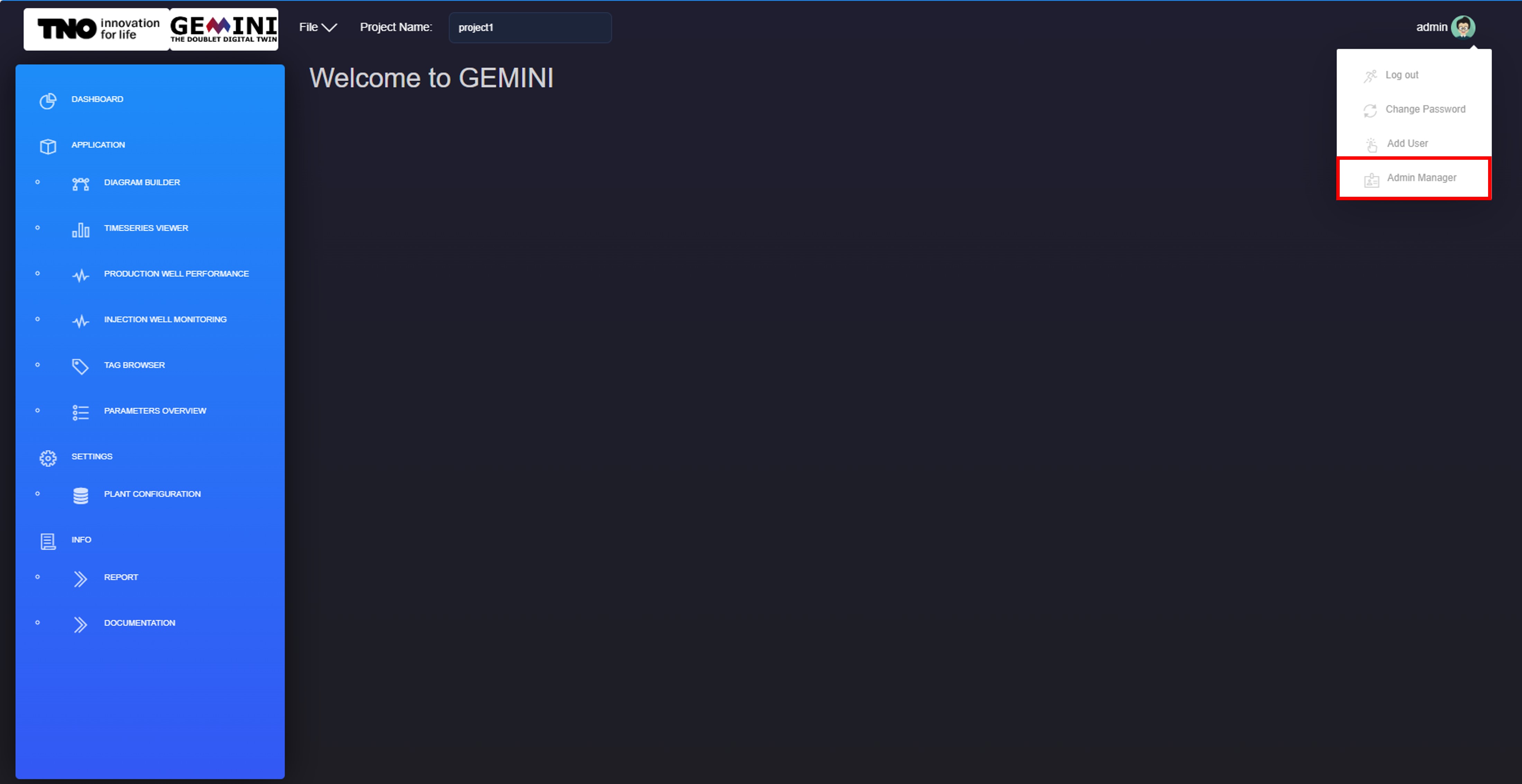 Click on the user icon at the top right corner and select “Admin Manager”. This will direct you to the page where you can manage projects and user access.