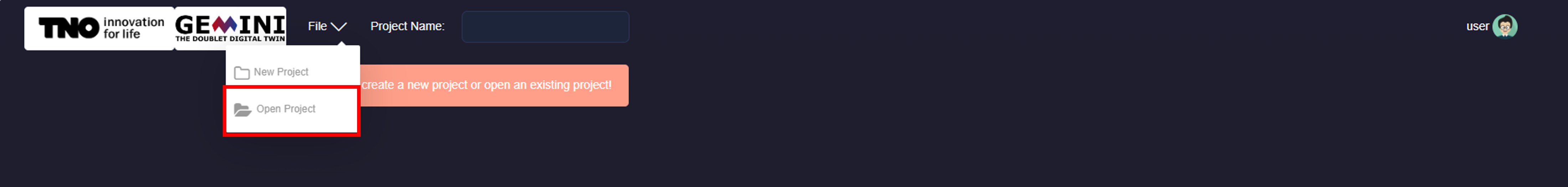 Once logged in, click on the “File” icon at the top left corner and select “Open Project”.